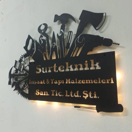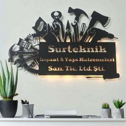 İnşaat ve Yapı Malzemeleri Temalı Aydınlatmalı Duvar Dekoru