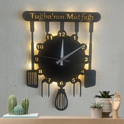 Mutfak Temalı Kişiye Özel Işıklı Duvar Saati – Şık Tasarım